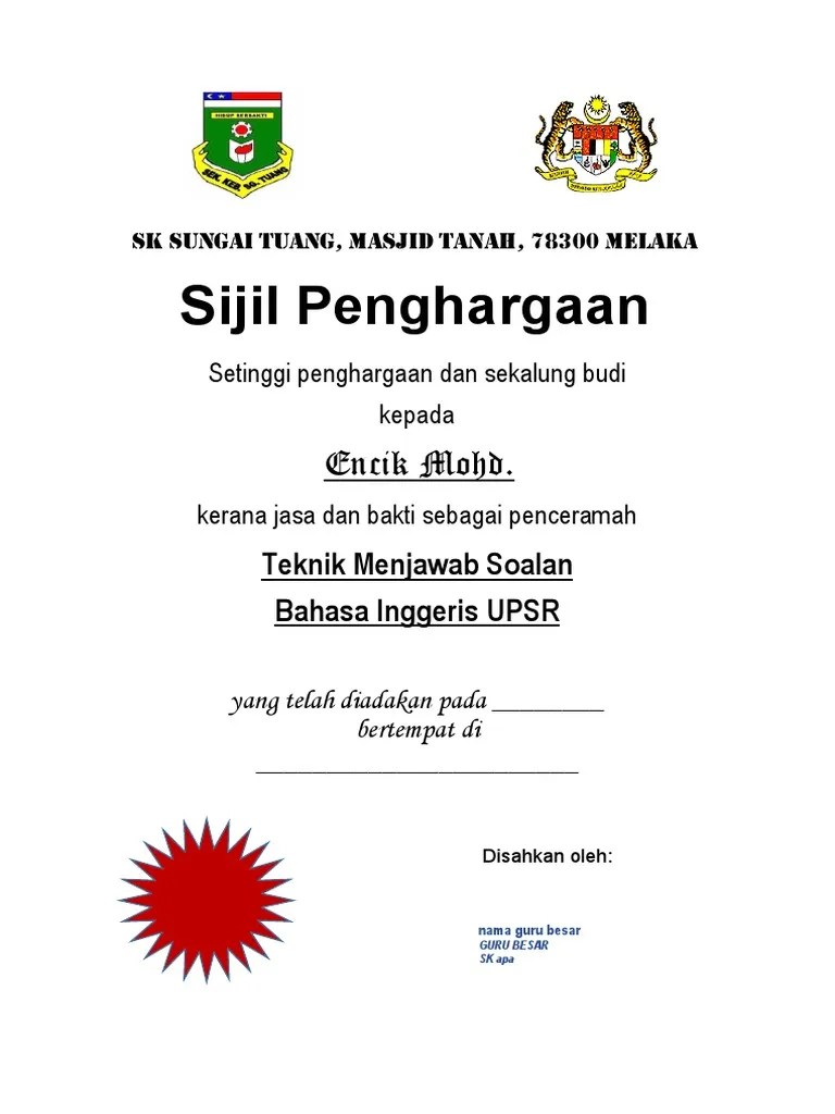 Contoh Sijil Penghargaan Penceramah : Contoh Sijil Penghargaan Ajk Desiraegwf. 17.11.2017 · pertamanya, marilah kita memanjatkan rasa syukur sambil mengucapkan kalimah alhamdulillah ke hadrat allah swt, kerana dengan limpah kurnia dan hidayahnya jua, mengizinkan kita berhimpun dan bertemu sekali lagi sempena menyambut maal hijrah 1439 hijrah di bawah tema kesatuan ummah kesejahteraan negara peringkat kolej vokasional …